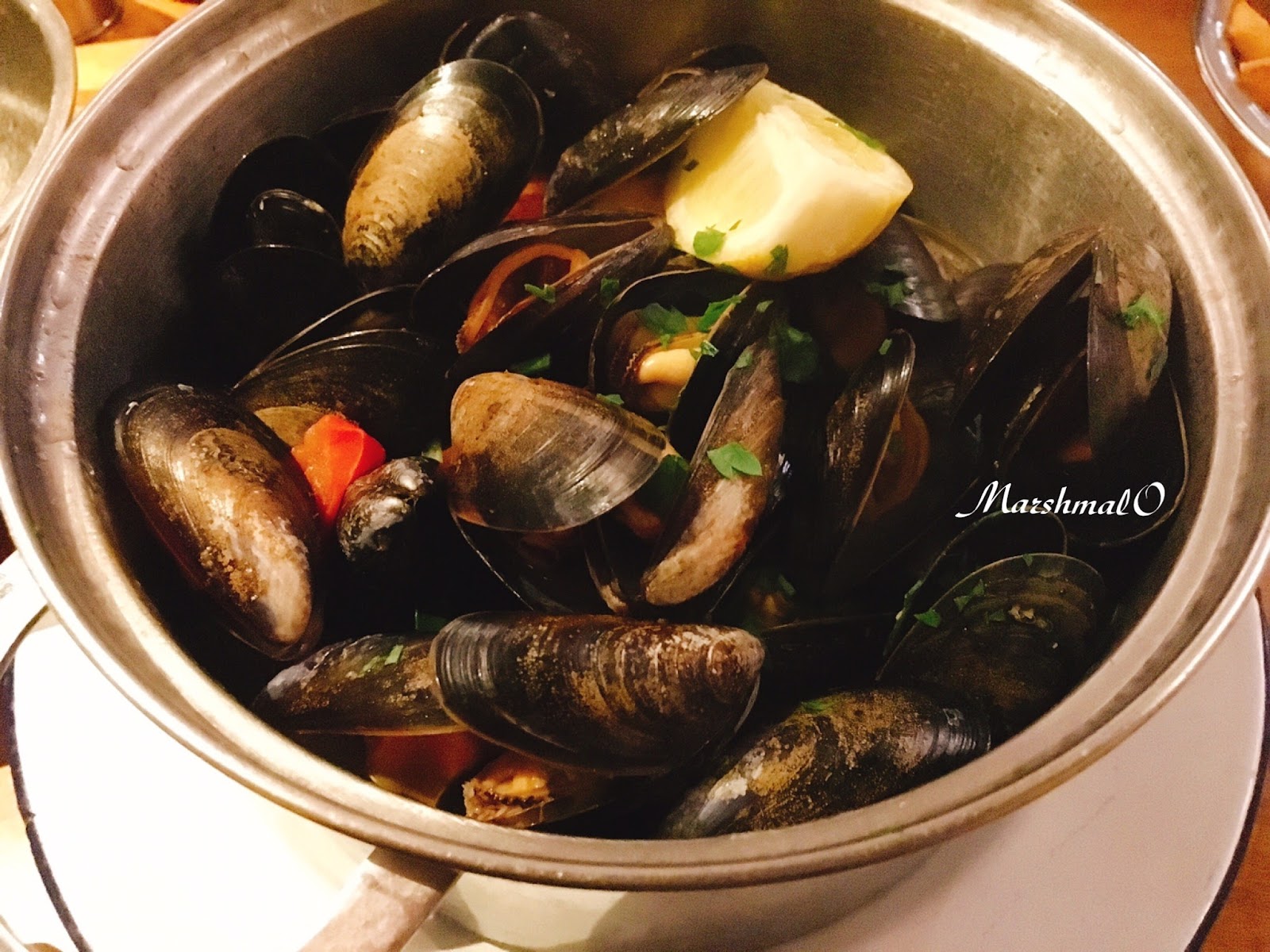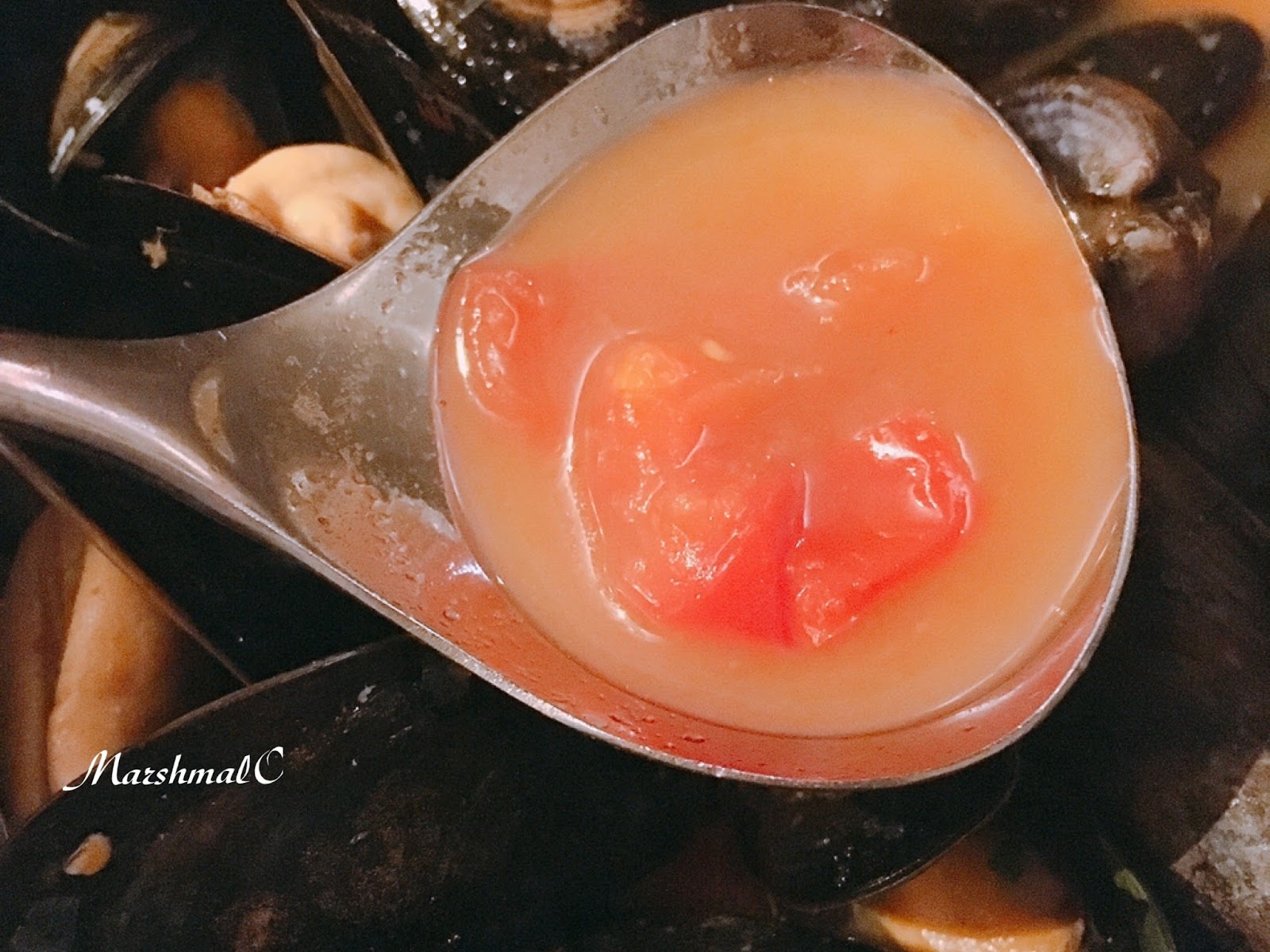 Mariniere則是以美國芹、蒜、白酒,再加上奶油調味,雖然有奶香但口味清淡,襯出淡菜的鹹鮮。