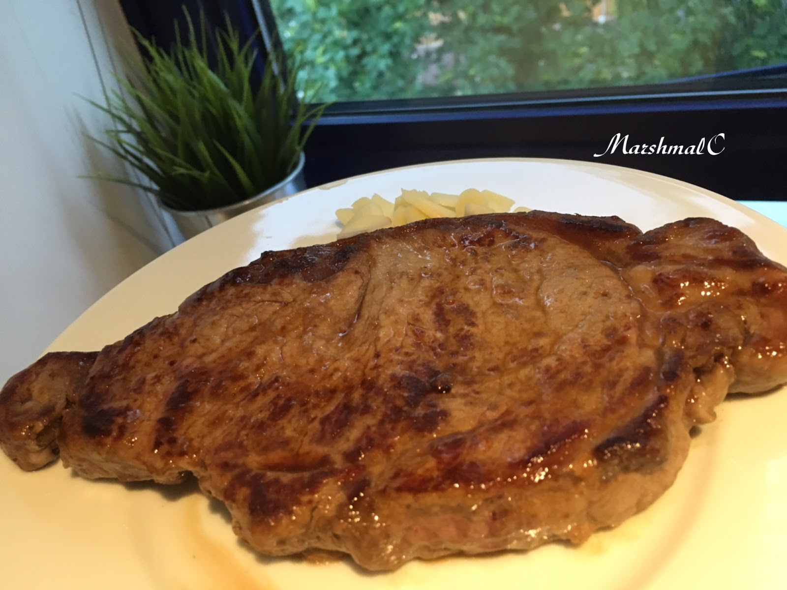 入住的第二天,我們買了美味的熟成牛排來煎,還吃了baby紅蘿蔔與小豆子。