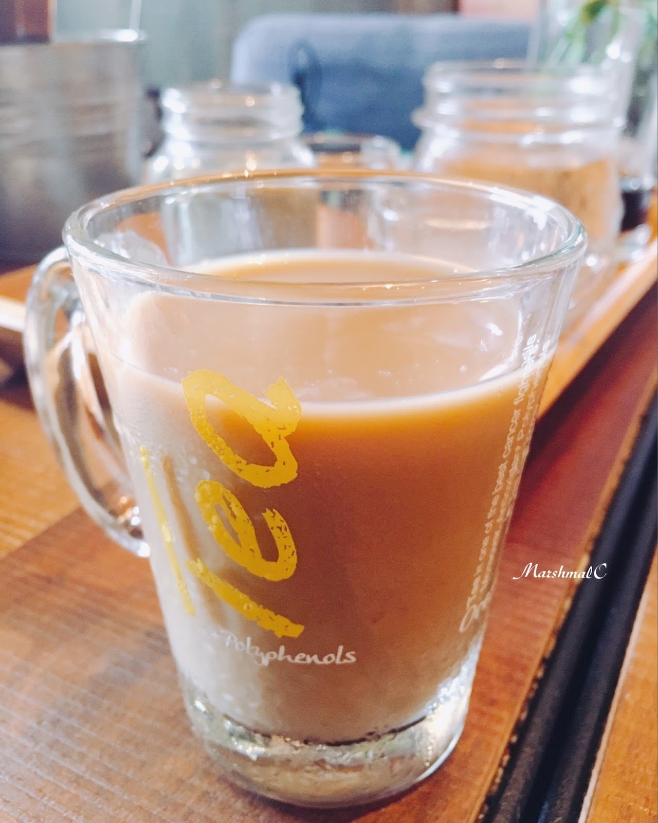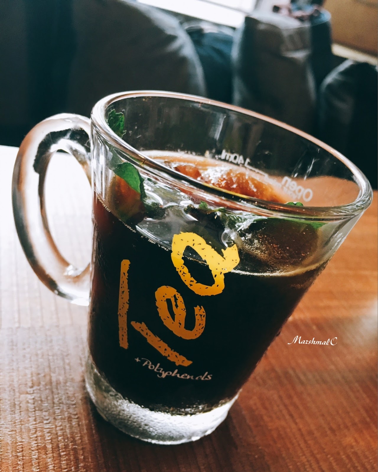 咖啡杯上的字樣是Tea,還有容量標示,風格有點衝突但還挺可愛的。杯裡裝了薄荷咖啡冰塊,可以在飲用的過程中維持沁涼跟風味~