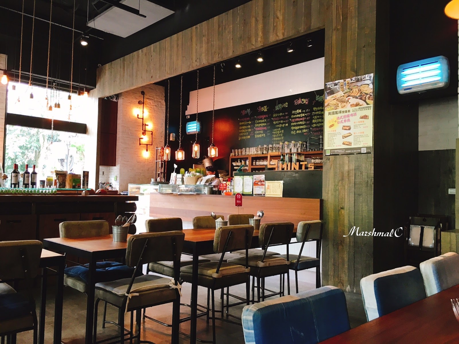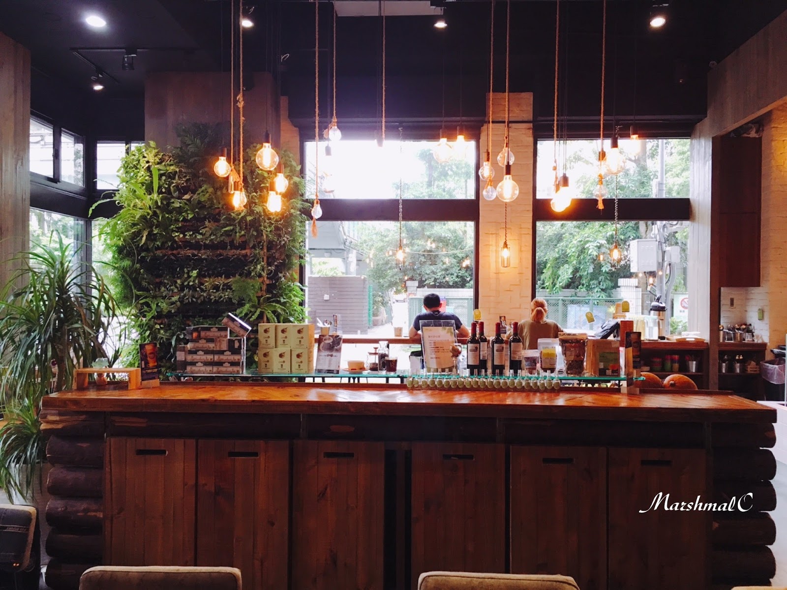 店內以原木與植栽搭配出大地自然風格,再運用燈具與牛仔布家飾,讓這裡有點輕工業風的流行感,又保有溫馨寫意的舒適度。