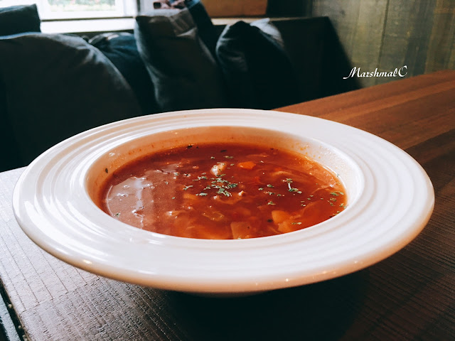 義式蔬菜湯($80)裡面加了高麗菜、紅蘿蔔、洋蔥、蒜頭還有芹菜,再撒上一點乾燥的巴西里葉及一片月桂葉。