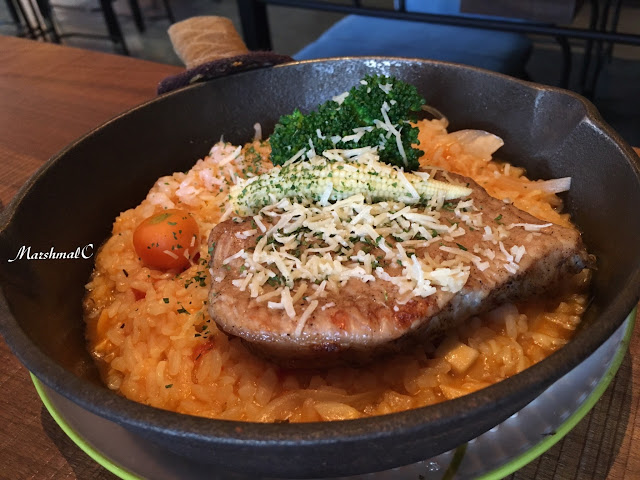 蕃茄豬排燉飯($230)使用的是台梗九號米與泰國米混合,口感偏軟,比較接近燴飯的口感。以燉飯來說,我還是期待保有嚼勁的米心~