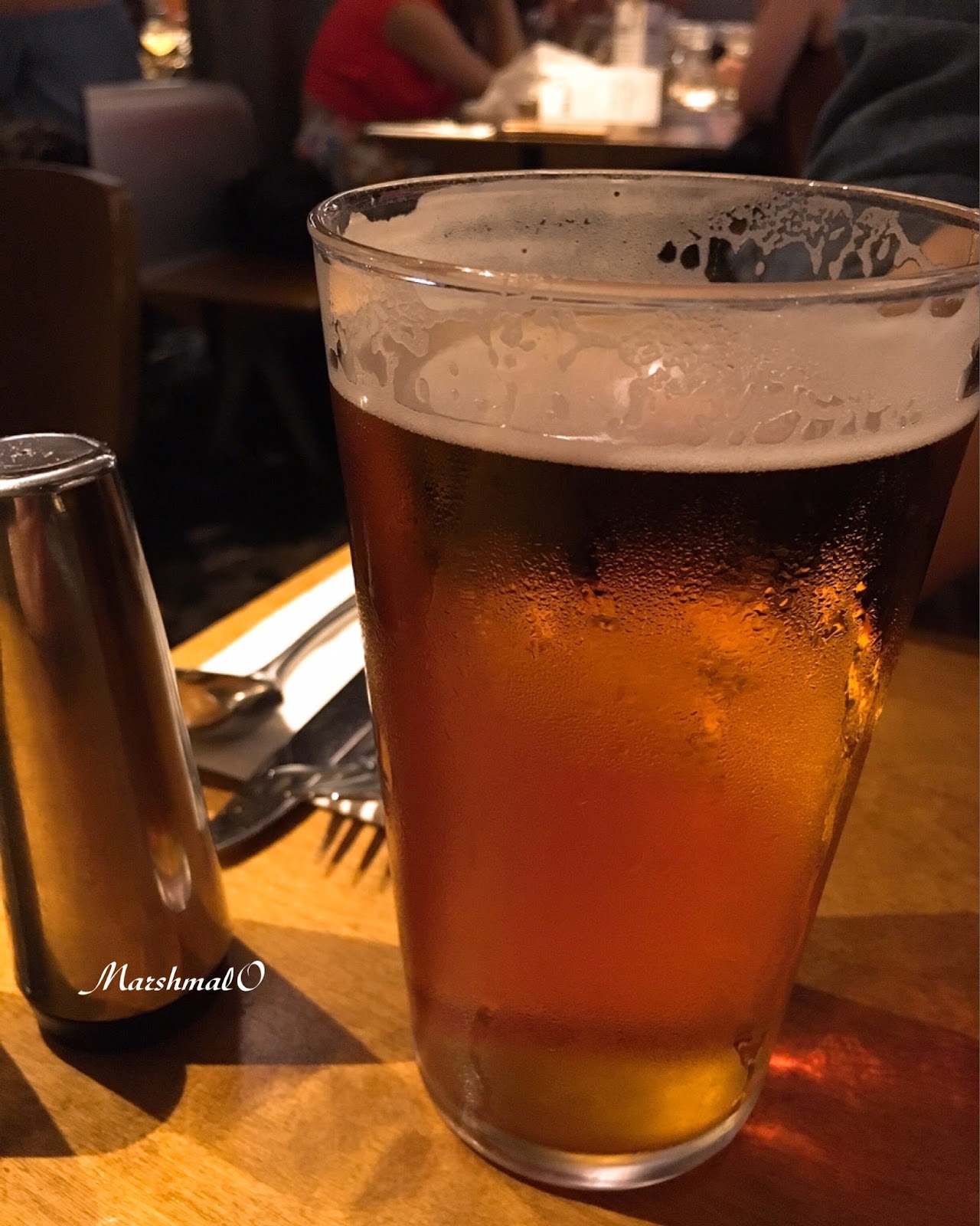 在這裡用餐最棒的事情之一就是酒單豐富,光是玻璃瓶裝的啤酒就有52種選擇~生啤、紅白酒、粉紅酒、雞尾酒,光是酒單就滿滿一整頁。我們今天的主餐是淡菜,所以我選了白酒Vinuva Pinot Grigio。灰皮諾(Vinuva Pinot Grigio 25cl/£7.6)口感柔順、香氣淡雅,不甜、有一點點微酸,帶著濃厚的果香。