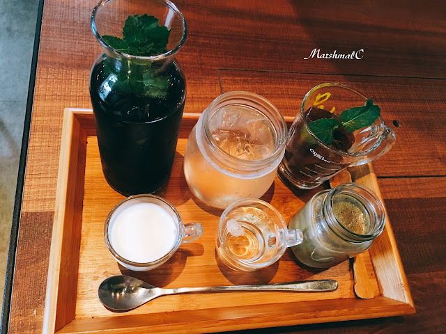 店家貼心的準備了鮮奶或果糖,可以自由的變化咖啡的風味,就算獨享這一壺咖啡也會很有樂趣,搭配QQ滑滑的芝麻布丁,是很不錯的下午茶選擇。